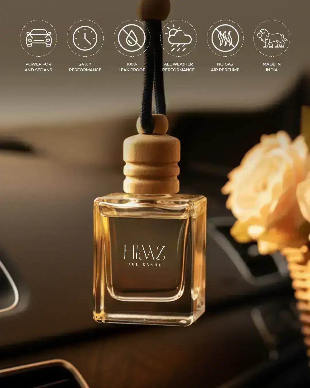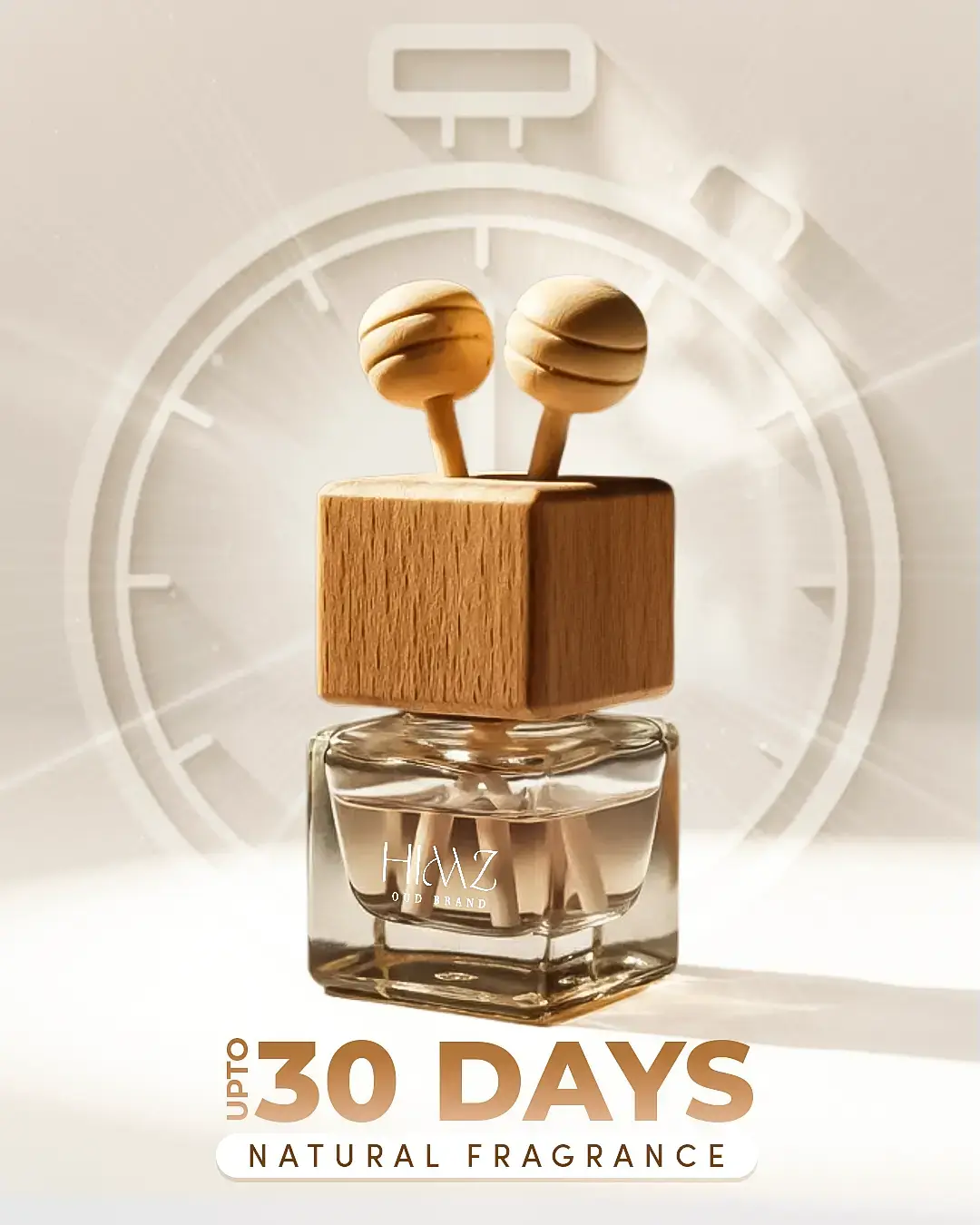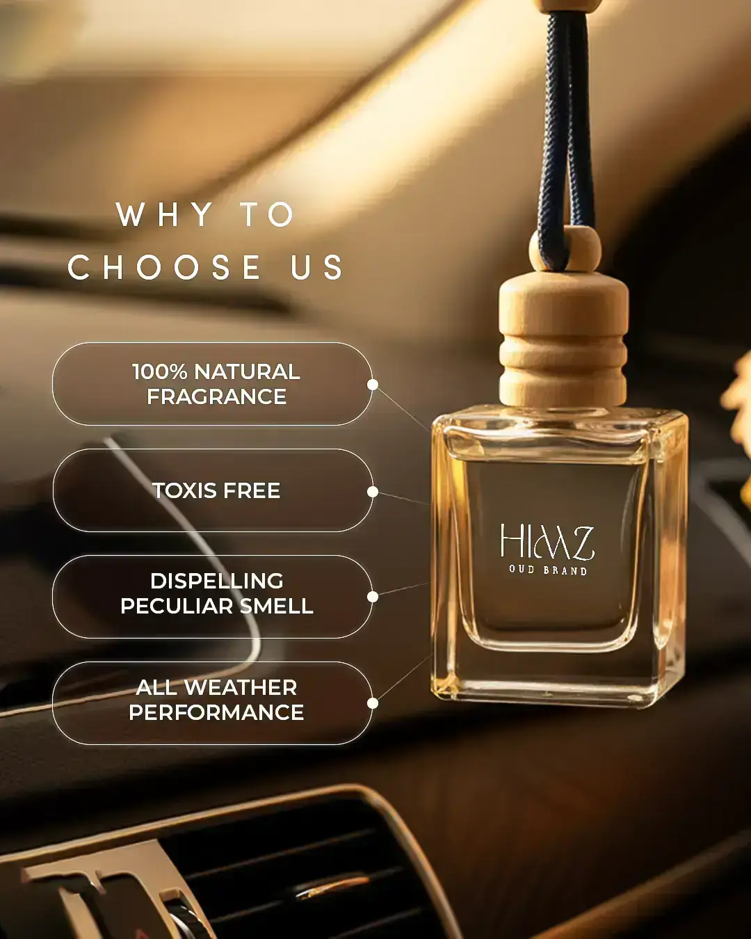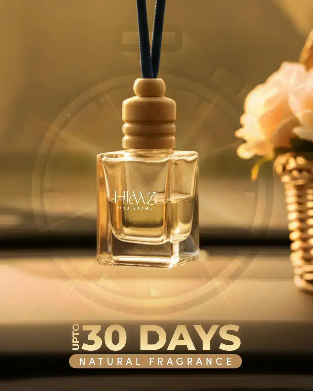 A: Each Himz Oud perfume is crafted with premium fragrance oils that diffuse slowly through air circulation. Whether clipped to the AC vent or hung from the mirror, it releases a continuous, soothing aroma that keeps your car fresh.
