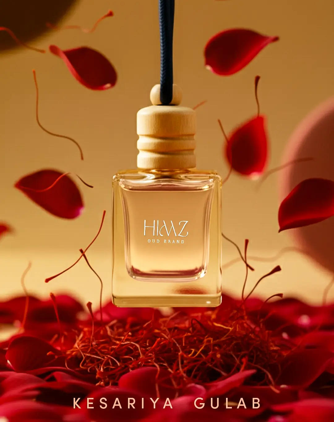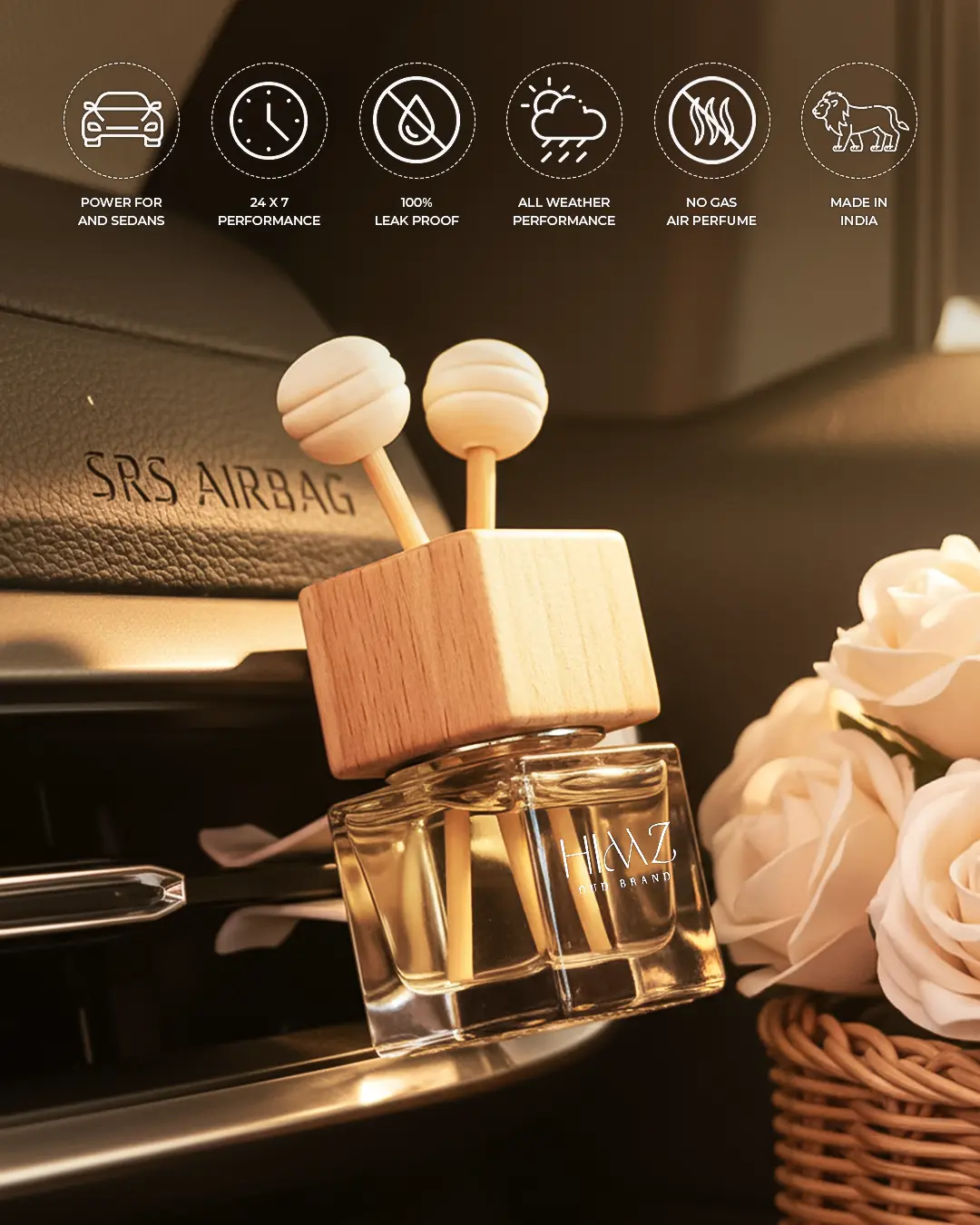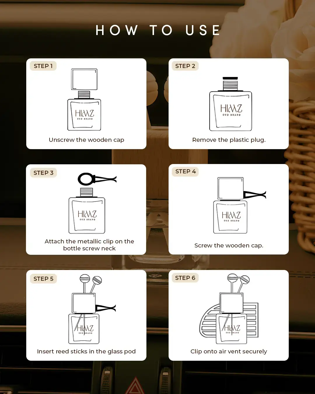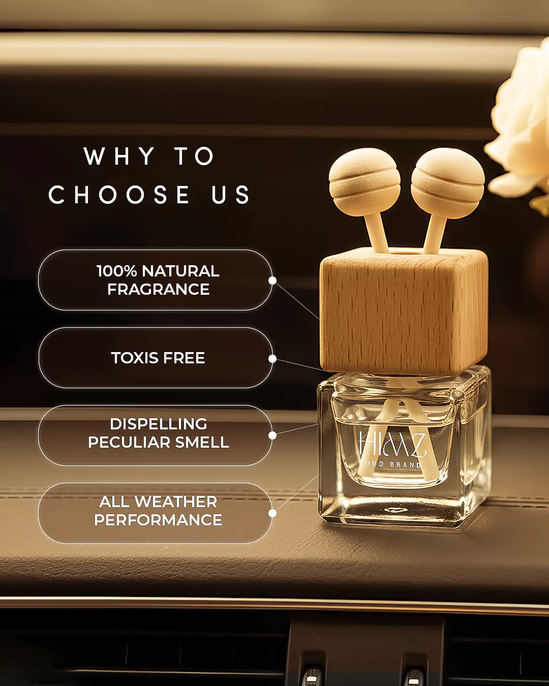 A: Each Himz Oud perfume is crafted with premium fragrance oils that diffuse slowly through air circulation. Whether clipped to the AC vent or hung from the mirror, it releases a continuous, soothing aroma that keeps your car fresh.